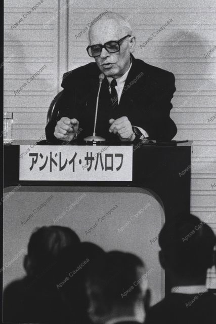 Две фотографии А.Д.Сахарова во время дискуссии "Хиросима и мировое сообщество - мнение доктора Сахарова"