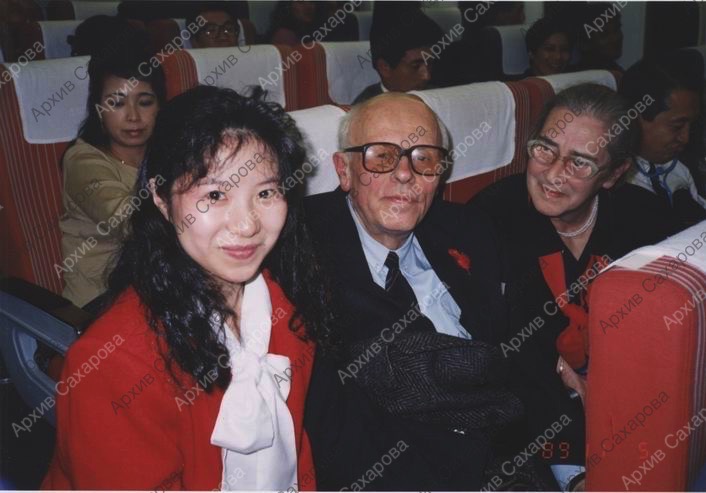 Фотография А.Д.Сахарова и Е.Г.Боннэр в самолете во время перелета из Хиросимы в Токио, с неизвестной