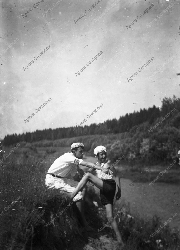 Фотография Андрея и Юры Сахаровых на берегу реки. 1938-1939 гг.(?)