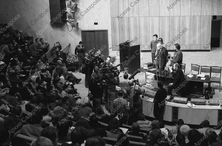 сюжет съемки определен сравнением с видеозаписью (см. в/кассету №25), дата - по Хронологии жизни А.Д.Сахарова