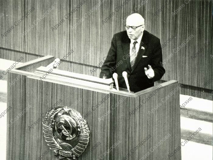 Две фотографии А.Д.Сахарова во время выступления на II Съезде народных депутатов СССР. 12 декабря 1989 г.
