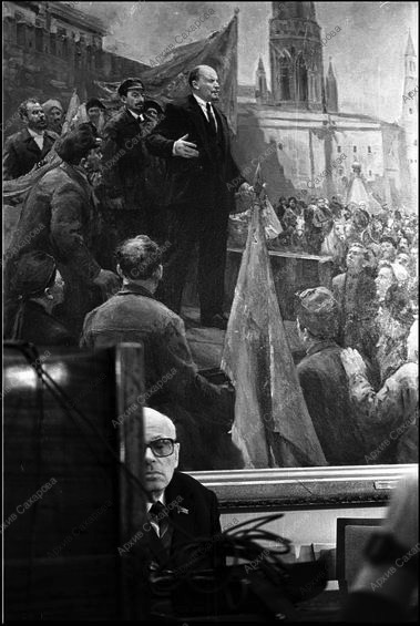 Четыре фотографии А.Д.Сахарова и других сопредседателей в президиуме во время заседания Межрегиональной депутатской группы. 14 декабря 1989 г.