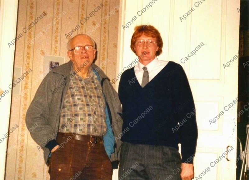 Фотография А.Д.Сахарова дома, с неизвестным молодым человеком