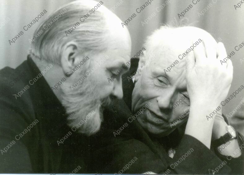 Фотография А.Д.Сахарова и Ю.Ф.Карякина в президиуме на каком-то заседании