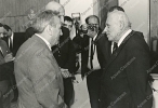 Фотография А.Д.Сахарова во время беседы, в группе людей