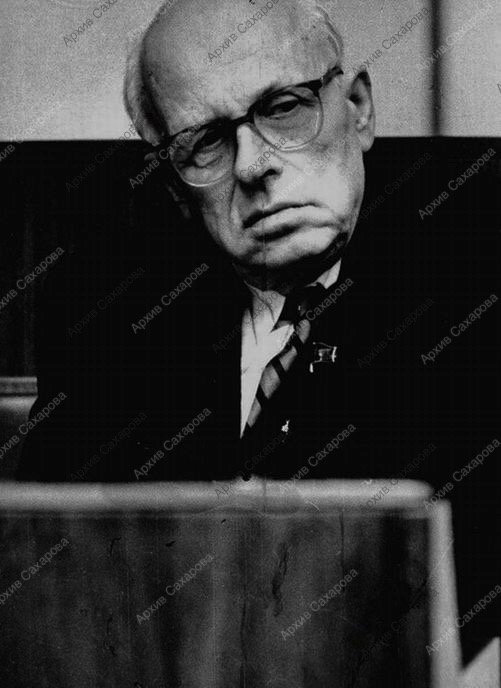 Фотография А.Д.Сахарова в каком-то зале заседаний