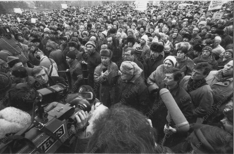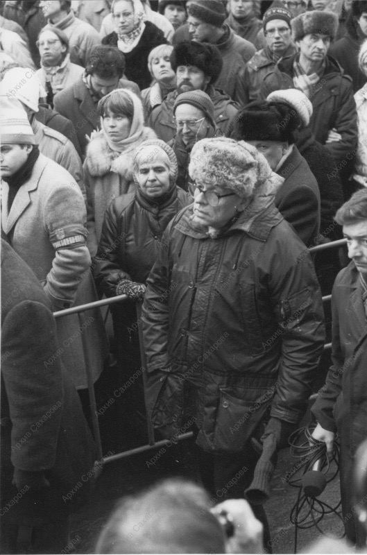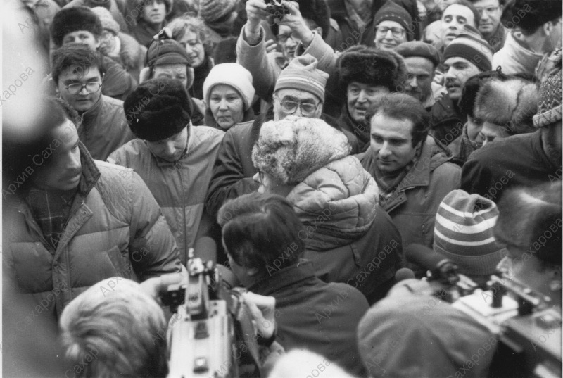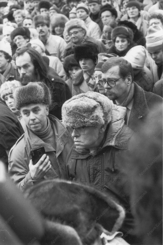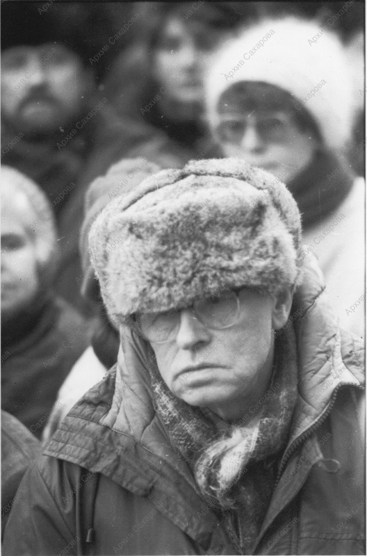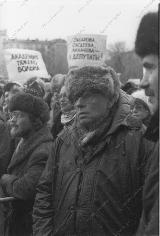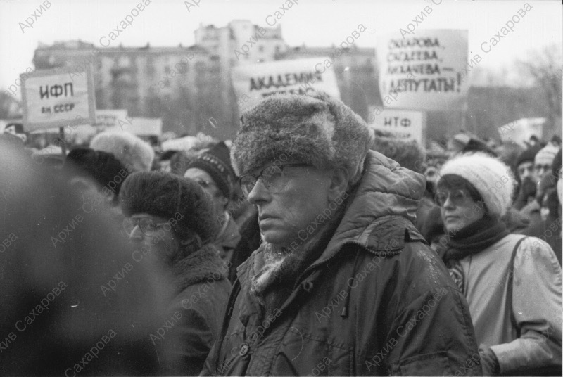 Восемь фотографий А.Д.Сахарова среди участников митинга перед зданием Президиума АН СССР
