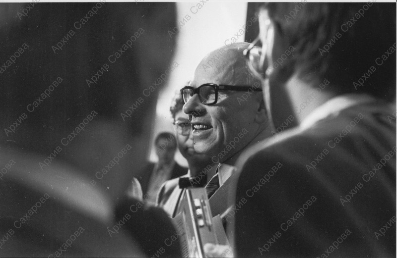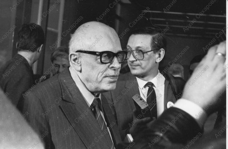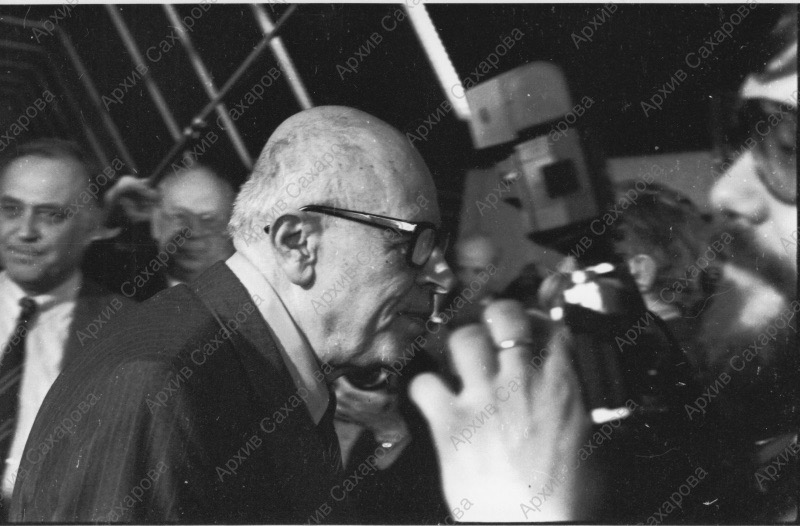 Три фотографии А.Д.Сахарова с журналистами во время Международного форума "За безъядерный мир, за выживание человечества"
