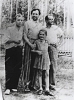 Фотография А.Д.Сахарова во дворе его дома на "объекте" с коллегами Ю.А.Романовым, Ю.А.Зысиным и дочерью Таней. 1954-1955 гг.(?)