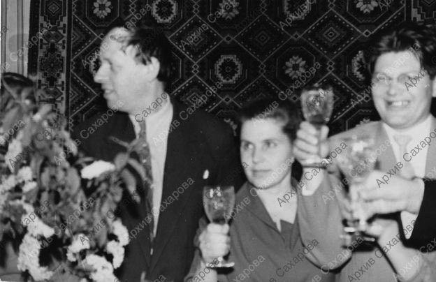 Фотография А.Д.Сахарова на его дне рождения с Ю.Н.Бабаевым и Л.Поповой