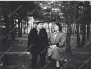 Фотография А.Д.Сахарова с женой К.А.Вихиревой во время прогулки, на скамейке