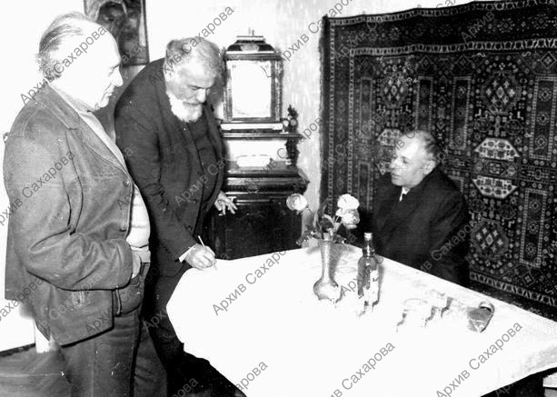 Фотография А.Д.Сахарова с Л.З.Копелевым и неизвестным в день присуждения ему Нобелевской премии мира, в квартире Ю.Тувима