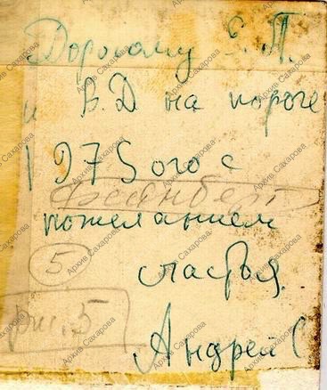 ч/б; с дарственной надписью А.Д.Сахарова на обороте Е.Л.Фейнбергу и его жене