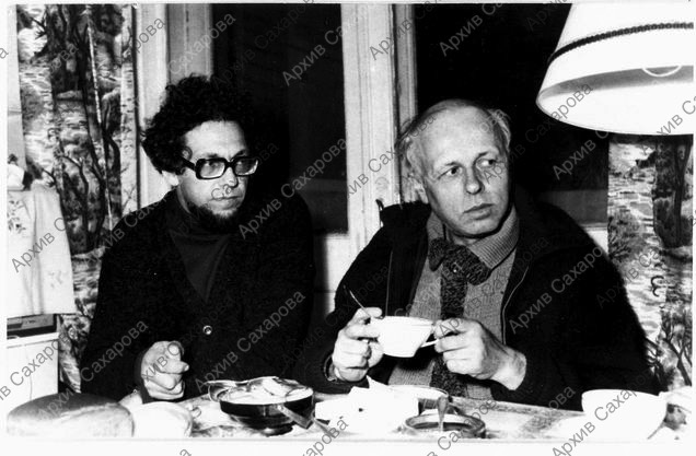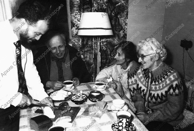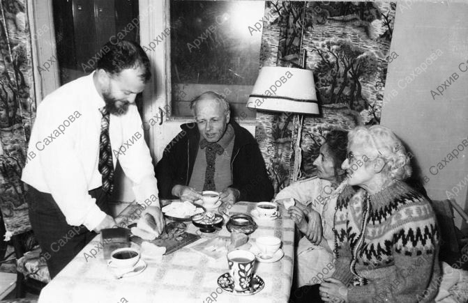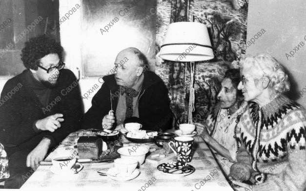 Пять фотографий А.Д.Сахарова дома, на кухне, с Р.Г.Боннэр, Л.К.Чуковской, Р.Цимериновым и Ю.Р.Тувимом