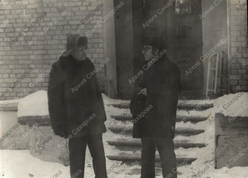Фотография А.Д.Сахарова с Б.Б.Вайлем на пороге дома в Жуковке
