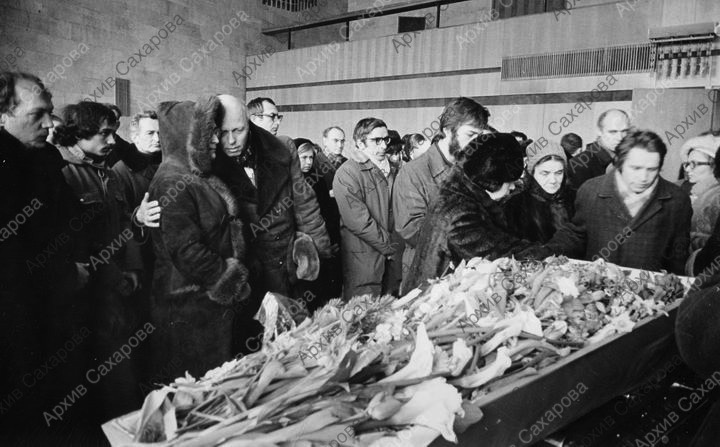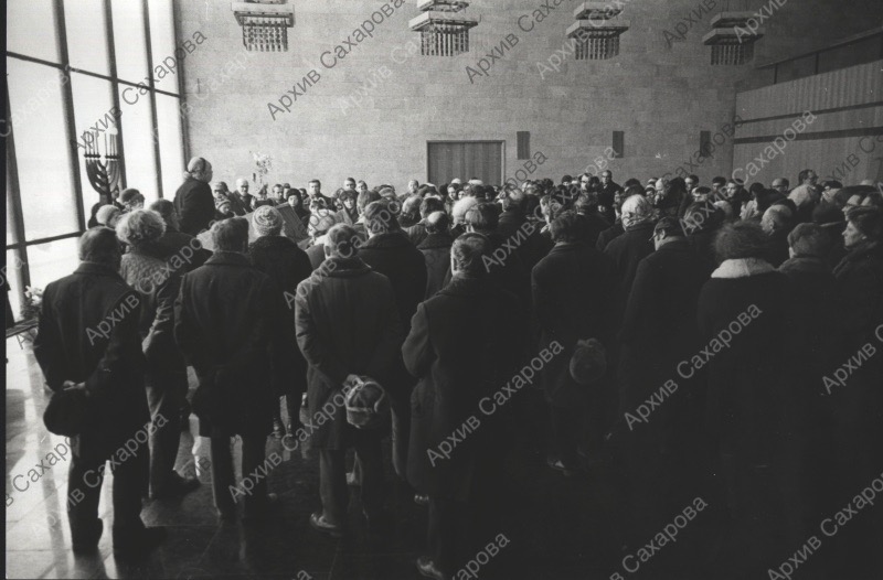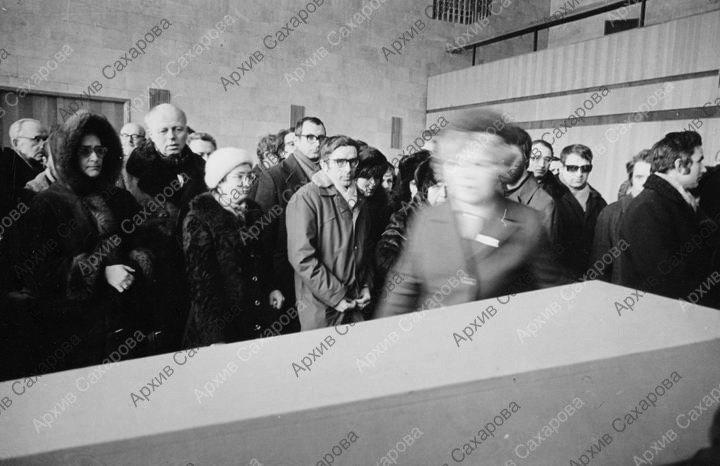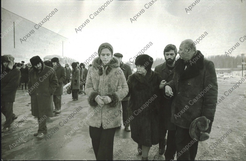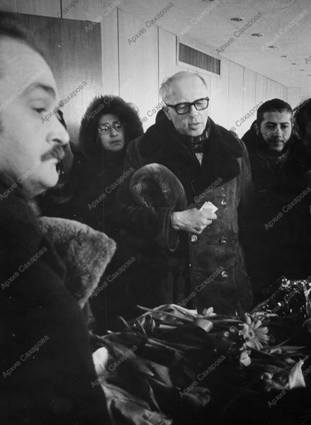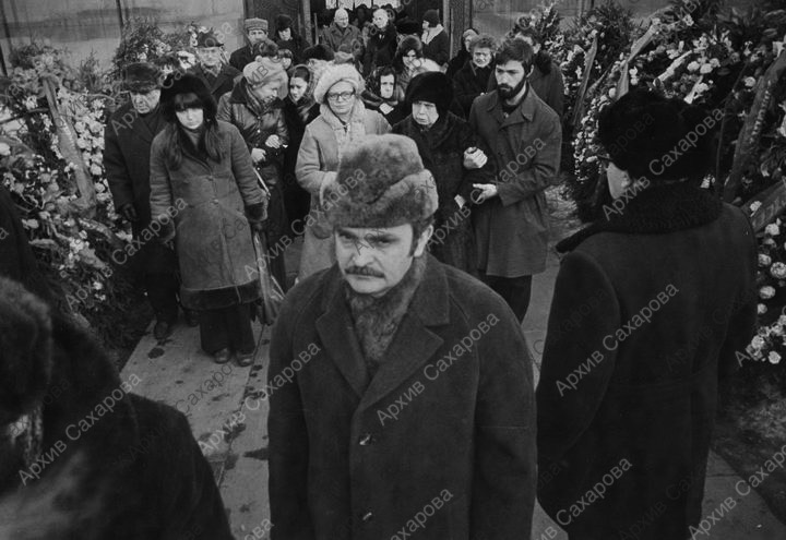 Шесть фотографий А.Д.Сахарова и Е.Г.Боннэр на похоронах Г.С.Подъяпольского, в группах людей