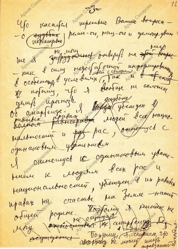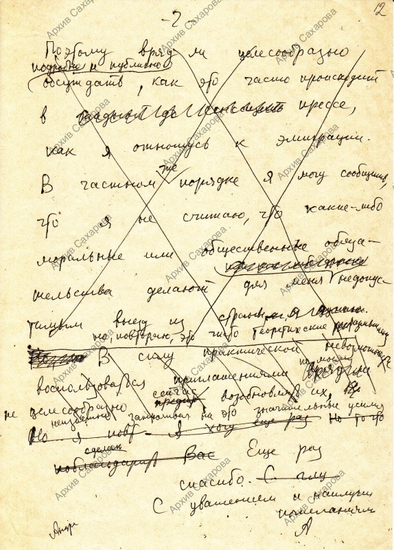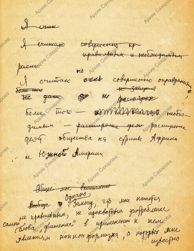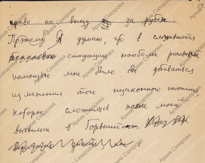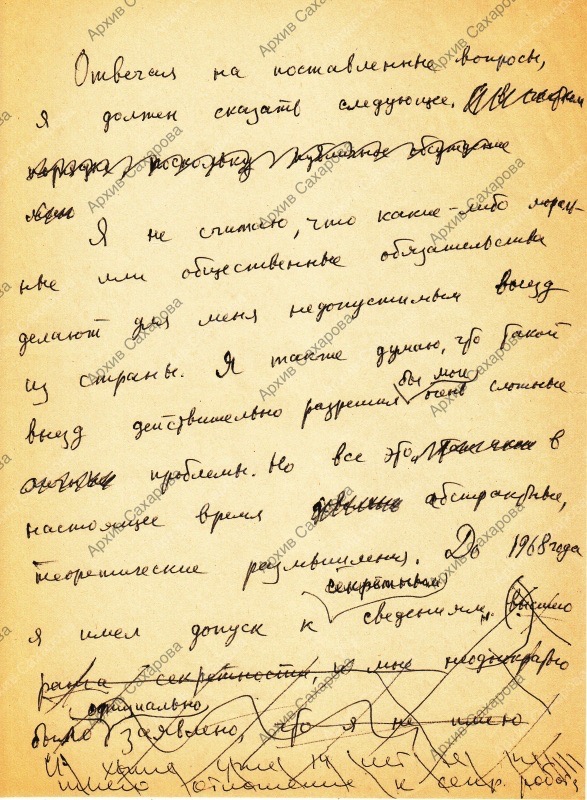 предположительная дата определена по приписке рукой Е.Г.Боннэр на первом листе документа о том, что Сахаров 14 лет не имеет доступа к секретным сведениям