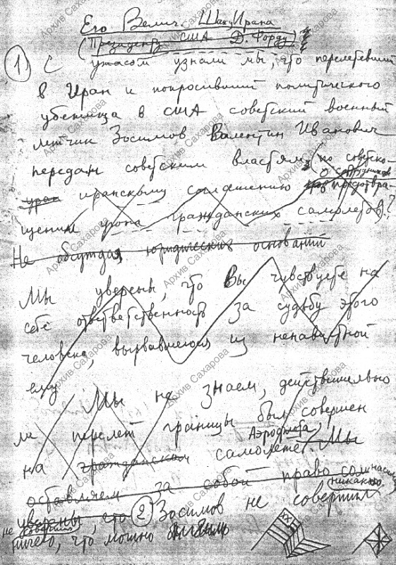Обращение к Его Величеству Шаху Ирана [Муххамеду Реза Пехлеви] и президенту США Джеральду Форду в защиту перелетевшего в Иран и выданного советским властям В.И. Зосимова