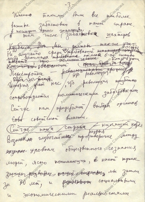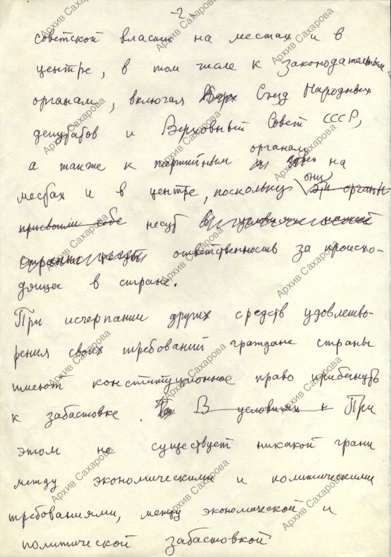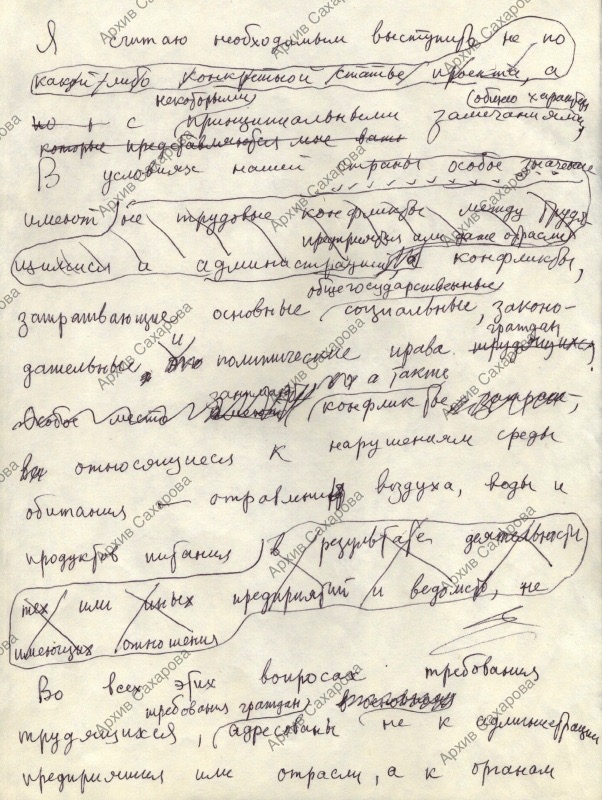 Черновик выступления во время второй сессии Верховного Совета СССР при обсуждении проекта Закона СССР о порядке разрешения коллективных трудовых споров