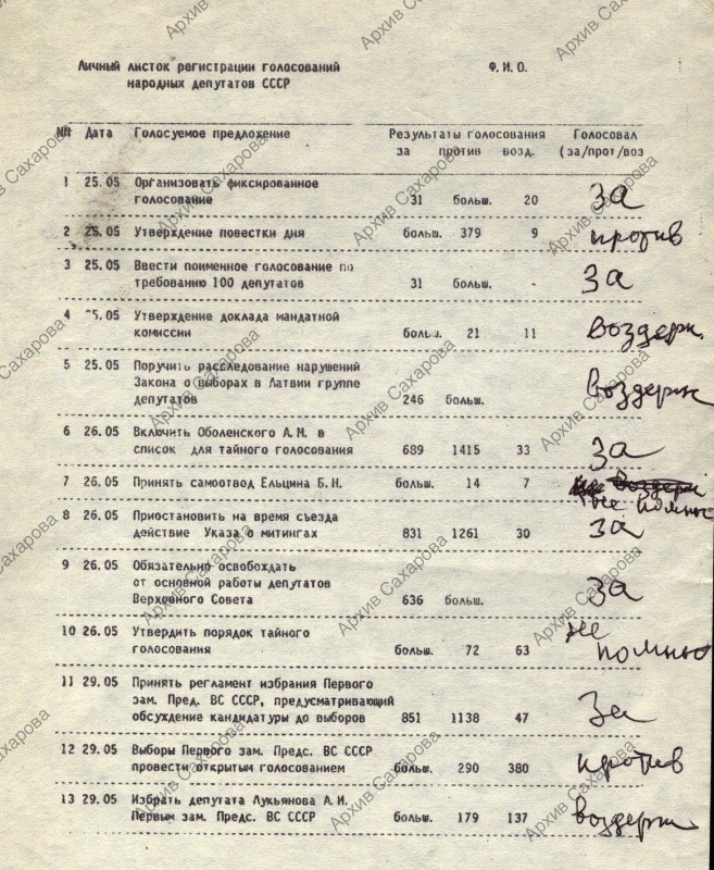 дата определена по последней дате в листке регистрации голосований (29 мая) и по дате окончания I съезда народных депутатов СССР