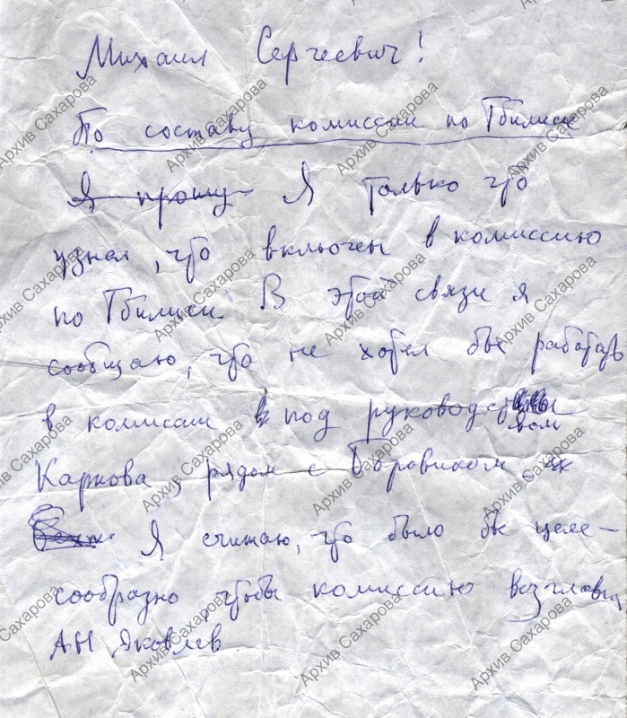 Две записки М.С.Горбачеву "По составу комиссии по Тбилиси"