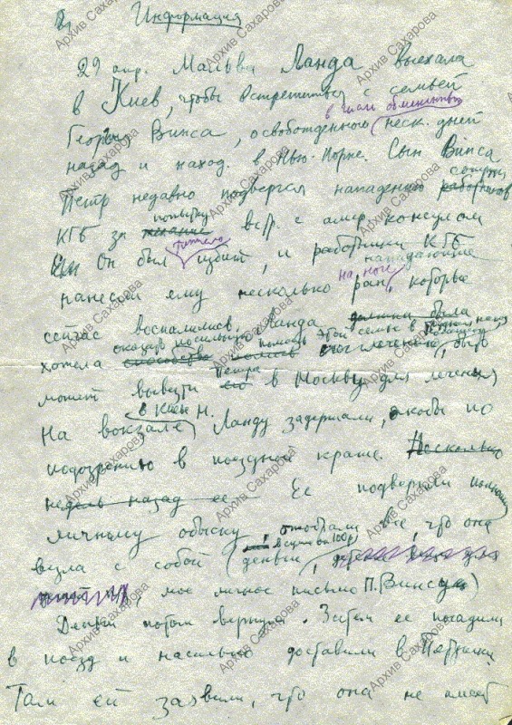 "Информация" о задержании и личном обыске М.Н.Ланда на вокзале г.Киева