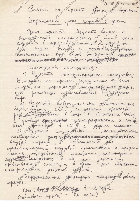 <<Заявка на проект "Фонда за выживание". Сокращение срока службы в армии.>>