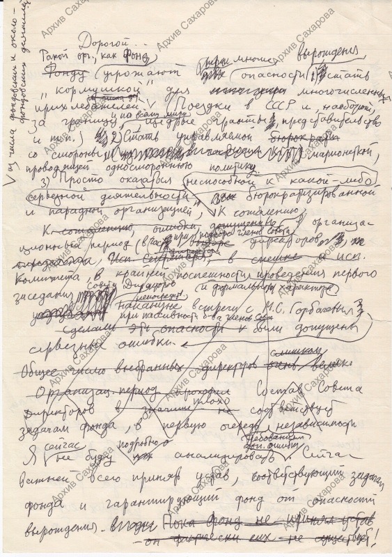 дата определена по дате проведения IV заседания Исполнительного комитета Фонда "За выживание...", на котором рассматривались замечания Сахарова (см. Протокол IV заседания)