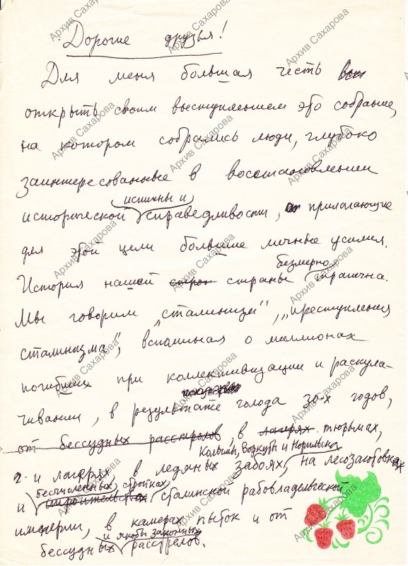 Черновик выступления на открытии Подготовительной конференции "Мемориала"