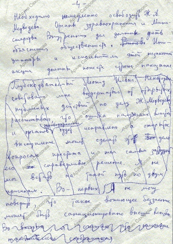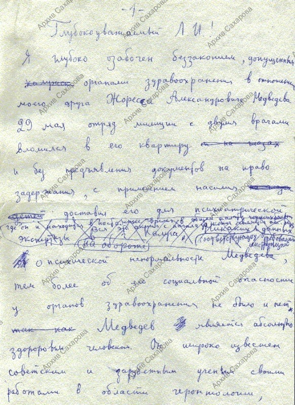Открытое письмо Генеральному секретарю ЦК КПСС Л.И.Брежневу о необходимости немедленного освобождения Ж.А.Медведева из психиатрической больницы
