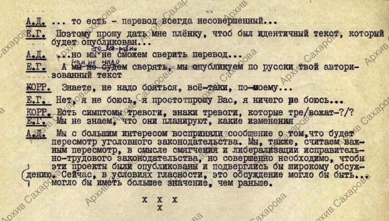 1) по словам Е.Боннэр, документ распечатан с магнитофонной записи;