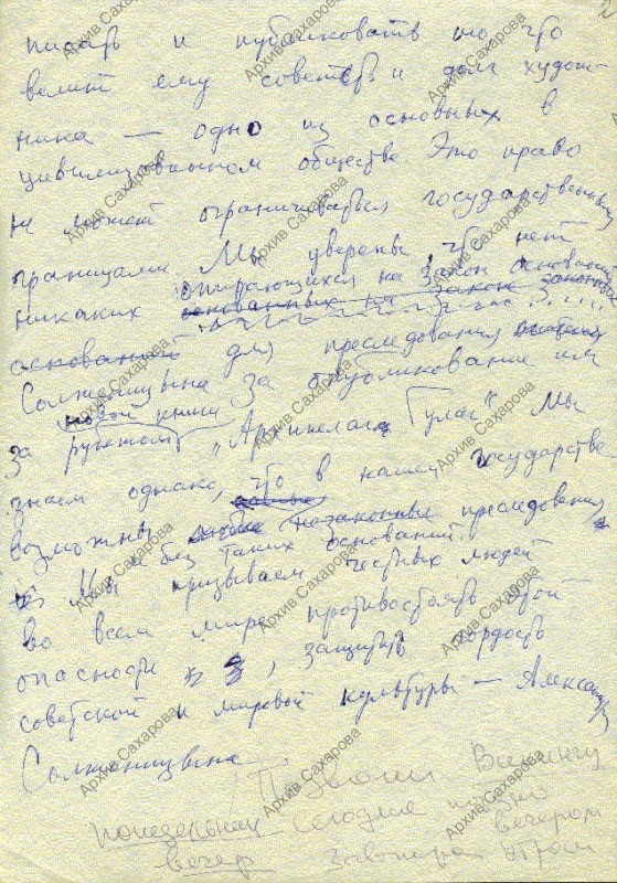 1) имеется приписка рукой Е.Г.Боннэр;
