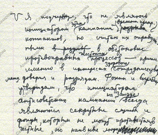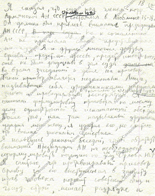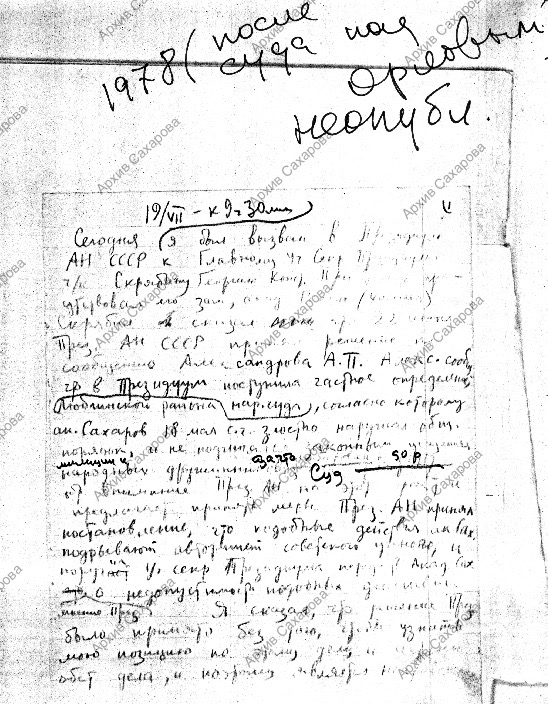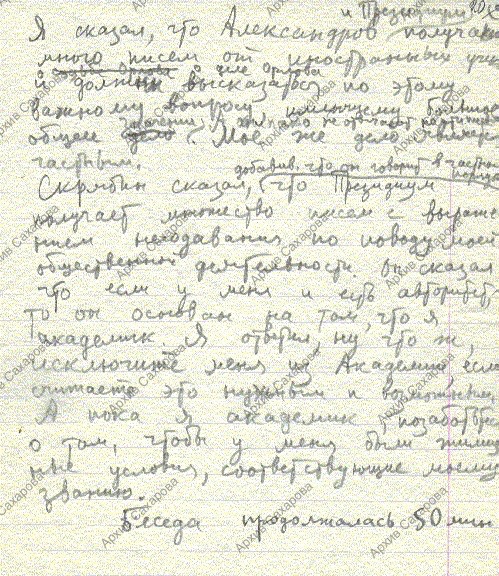 Запись беседы с Главным Ученым секретарем Президиума АН СССР Г.К.Скрябиным о решении Президиума предупредить Сахарова о недопустимости действий, подобных совершенным у суда над Ю.Ф.Орловым