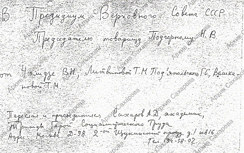 2) письмо Чалидзе, Литвиновой, Подъяпольского и Великановой Подгорному на 1л.