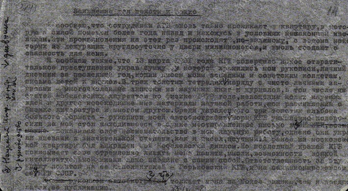 О тайных проникновениях в квартиру сотрудников КГБ и краже 13 марта 1981 г. сумки с документами