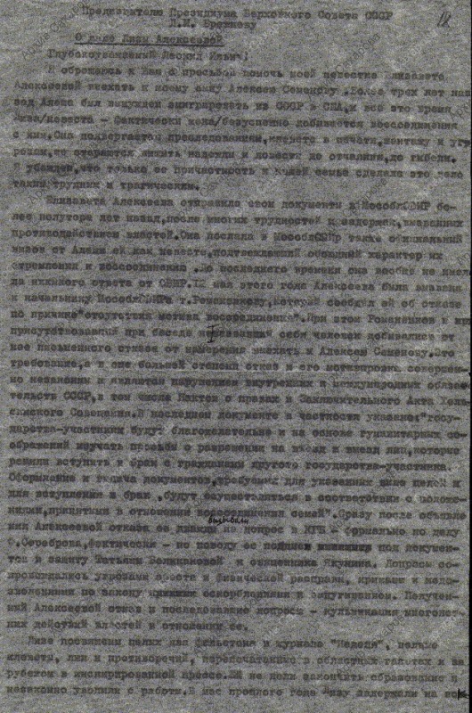 Письмо Председателю Президиума Верховного Совета СССР Л.И. Брежневу