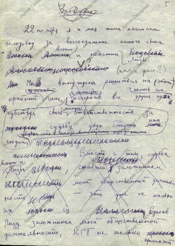 Заявление о начале голодовки с 22 ноября вместе с женой за воссоединение сына Алеши и невестки Лизы