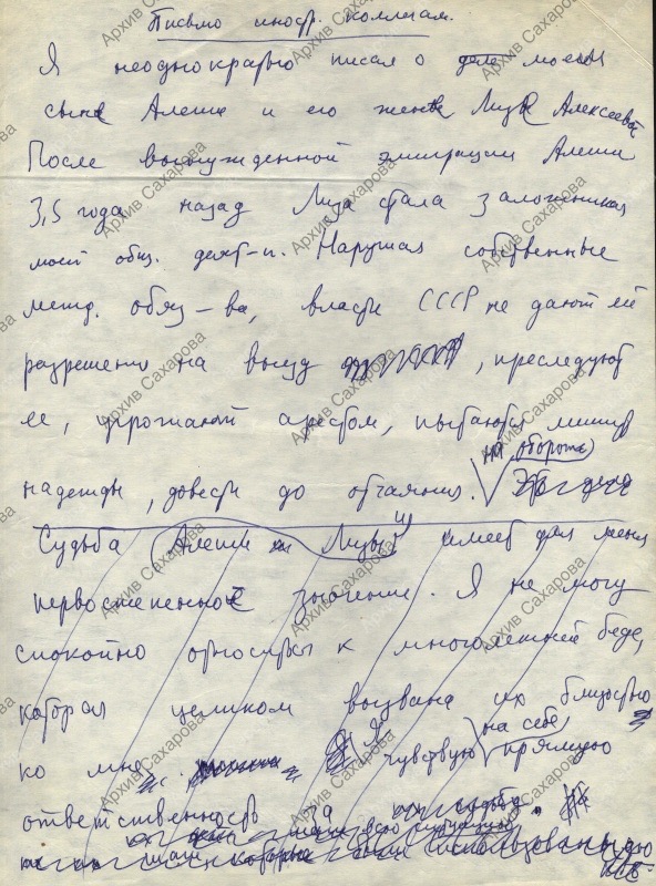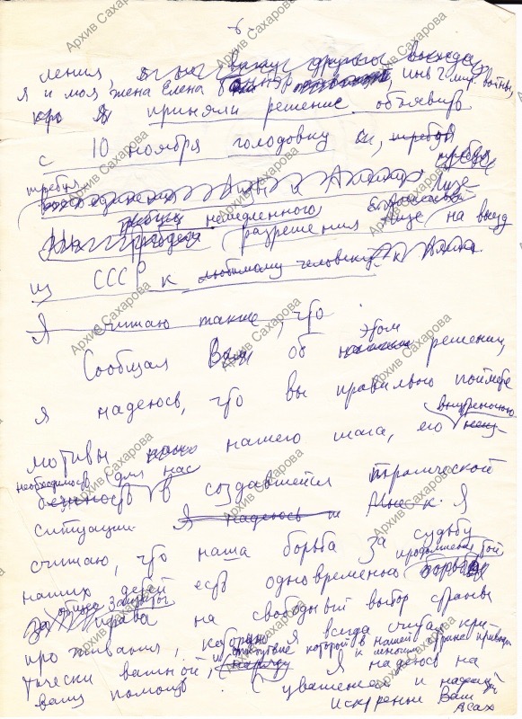 О безрезультатности обращений в ВС СССР, АН СССР и к коллегам, о решении объявить голодовку с 22 ноября за выезд Лизы Алексеевой