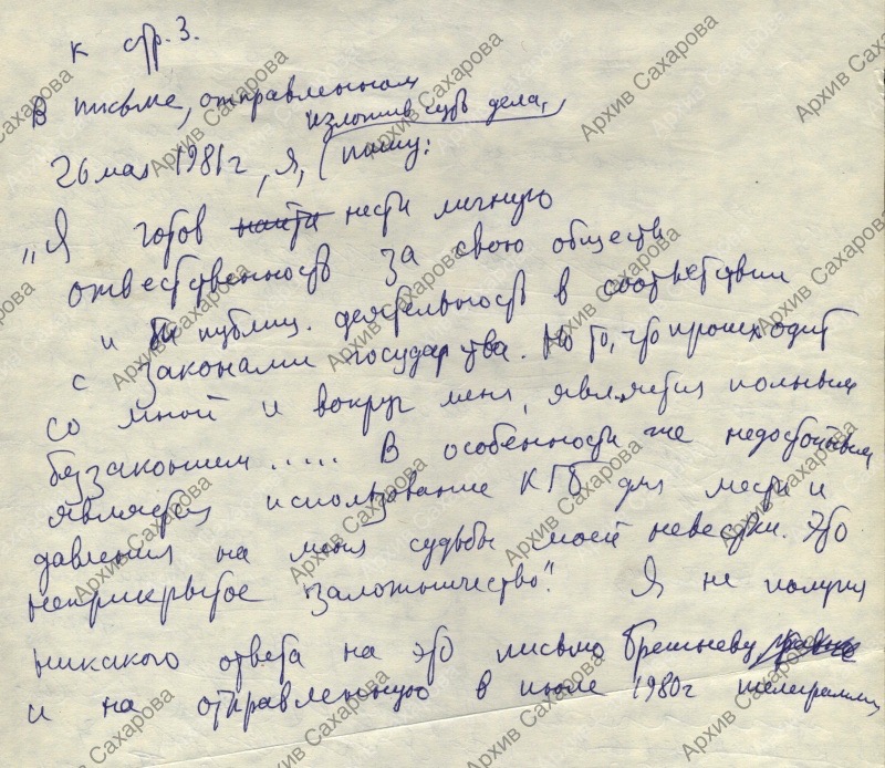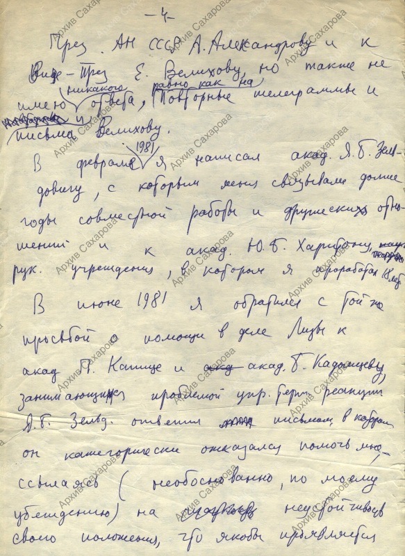 дата определена по обращению Сахарова от 9.10.1981, в котором упоминается данный документ