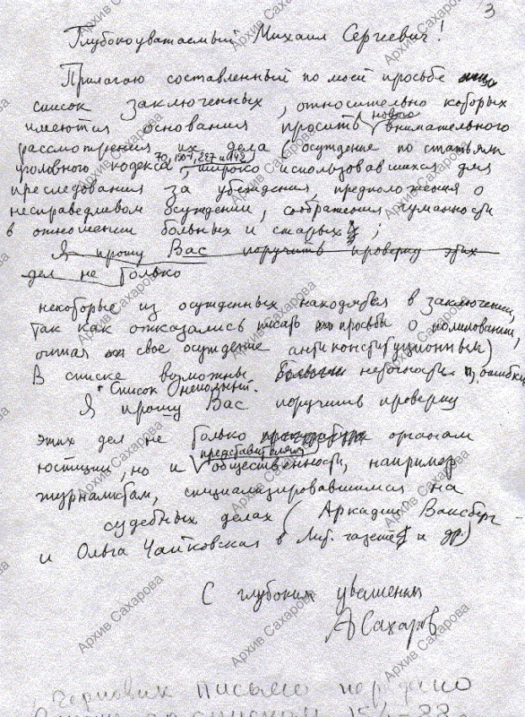 "Глубокоуважаемый Михаил Сергеевич!" (Обращение к М.С. Горбачеву о новом рассмотрении дел узников совести)
