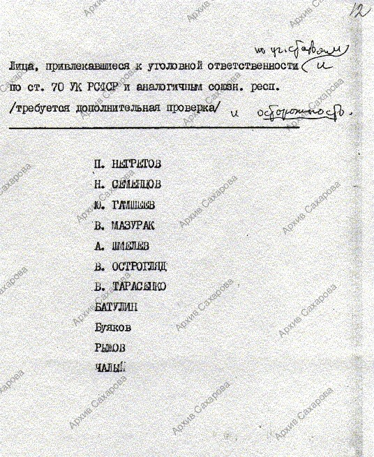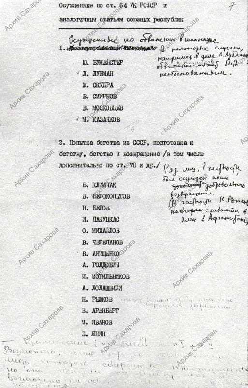 1) приписка рукой Е.Г.Боннэр с указанием даты;