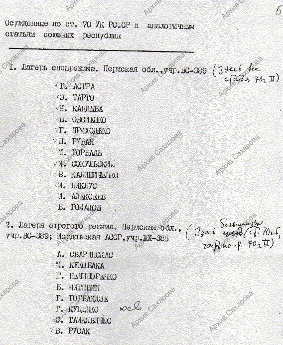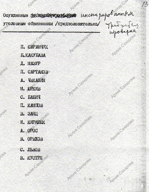 Черновик письма, "Список" осужденных по ст.ст. 70, 190-1, 227, 142 УК РСФСР и "Приложение" со списком людей, проверка дел которых представляет трудность