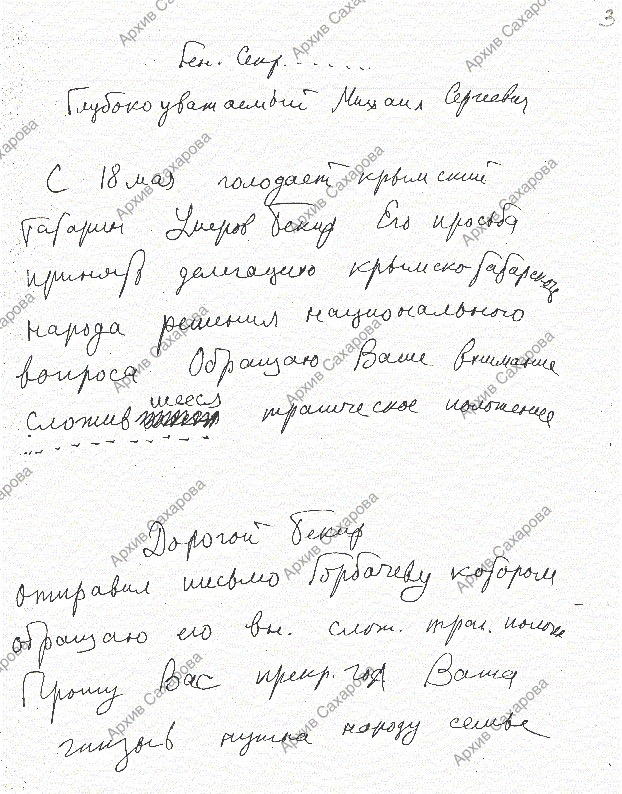 2) документ на одном листе с текстом обращения к М.Горбачеву в защиту Умерова