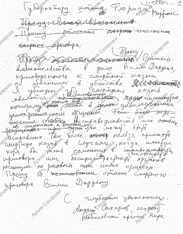 "Губернатору штата Флорида" (Обращение с просьбой о вмешательстве в дело Вилли Дардена, приговоренного к смертной казни)