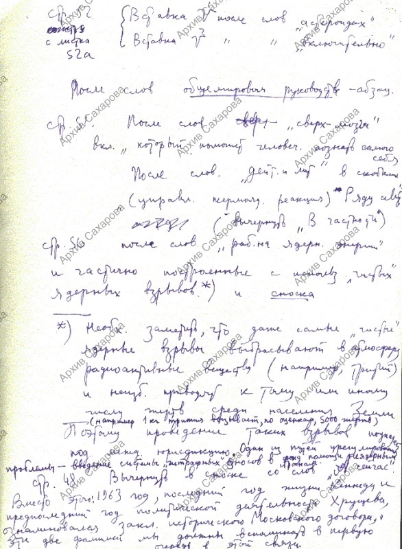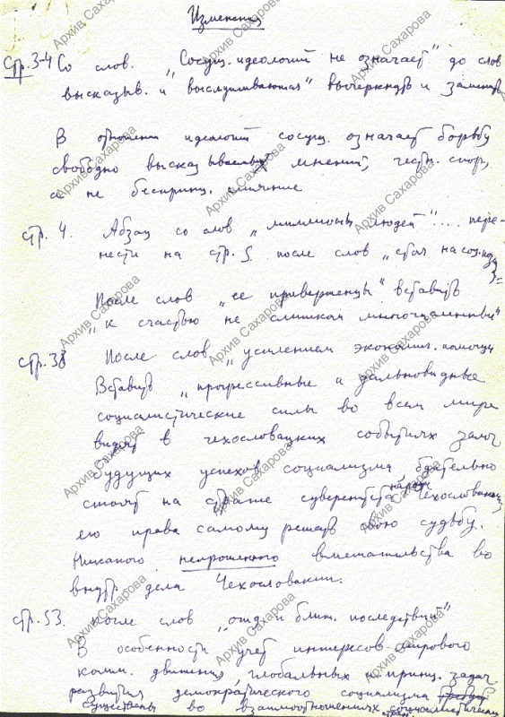 13 поправок А.Д.Сахарова к своей статье "Размышления о прогрессе, мирном сосуществовании и интеллектуальной свободе"