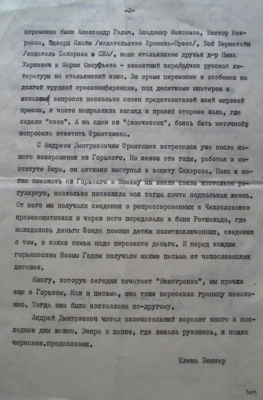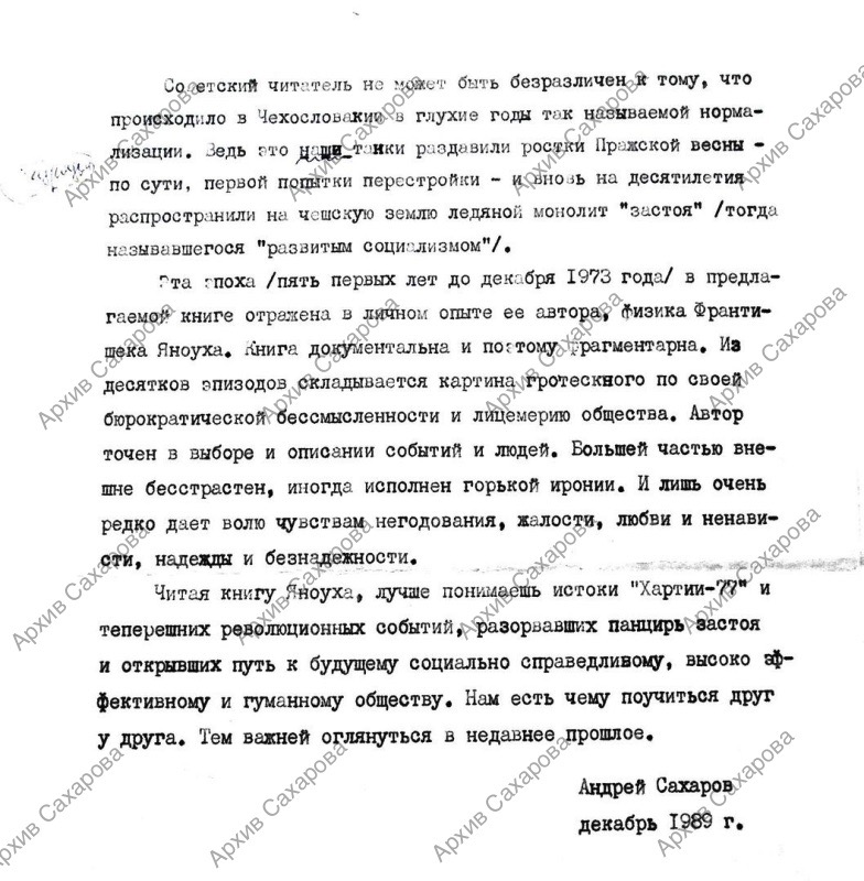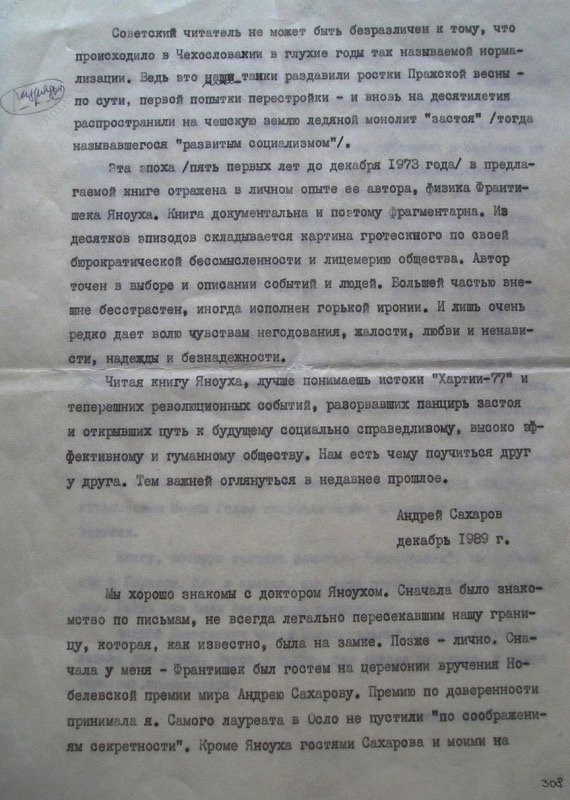 Предисловия А.Сахарова и Е.Боннэр к книге Франтишека Яноуха "Нет, я не сожалею"