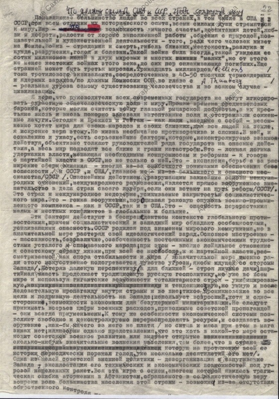 "Что должны сделать США и СССР, чтобы сохранить мир"
