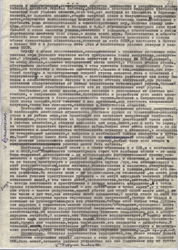1) машинописный список с внесенными поправками к предыдущим вариантам;