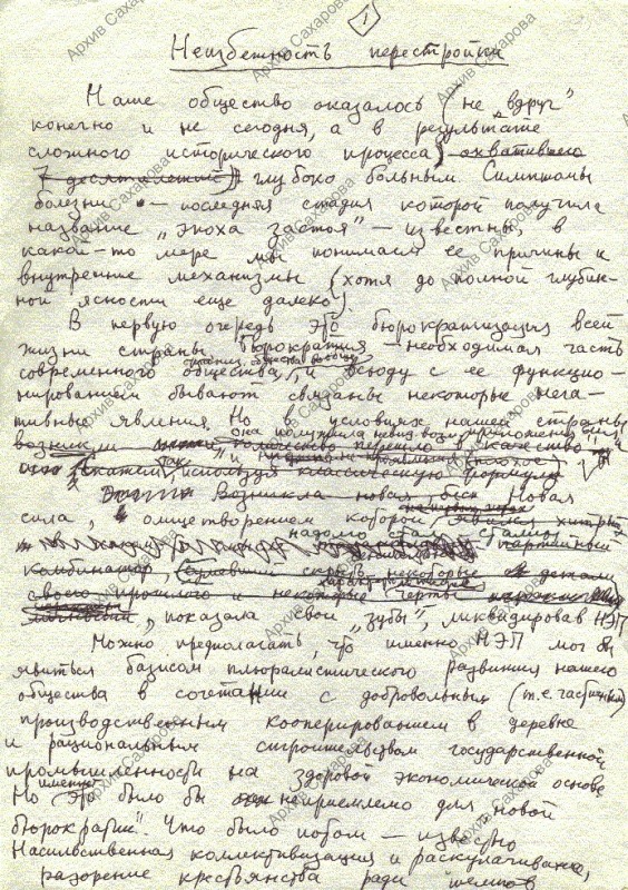 Начало чернового варианта статьи для сборника "Иного не дано" (М., Прогресс, 1988)