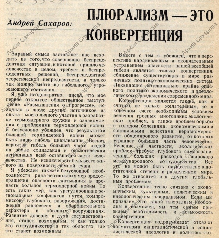 "Андрей Сахаров: Плюрализм - это конвергенция"